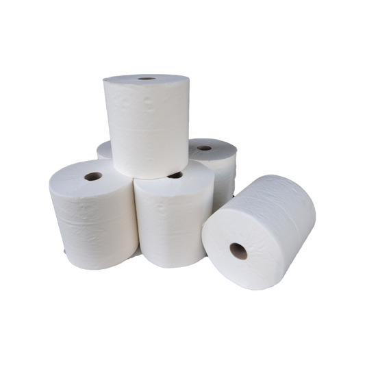 6 x Handtuchrollen Weiß 2 lagig Innenabrollung Putzpapierrollen Handtuchpapier 450Blatt