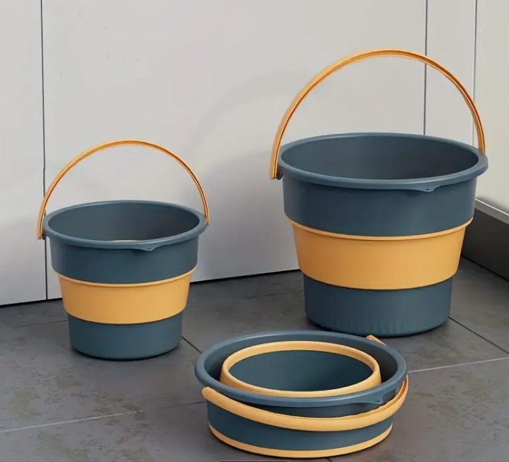 10 Liter Eimer Faltbar Putzeimer Plastik Kunststoff Wassereimer Grau/Gelb