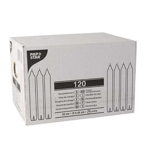 Haushaltskerzen weiss mit Dornloch Ø 2,45 cm · 20 cm 120Stk weiß Papstar